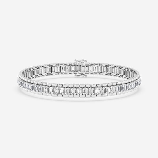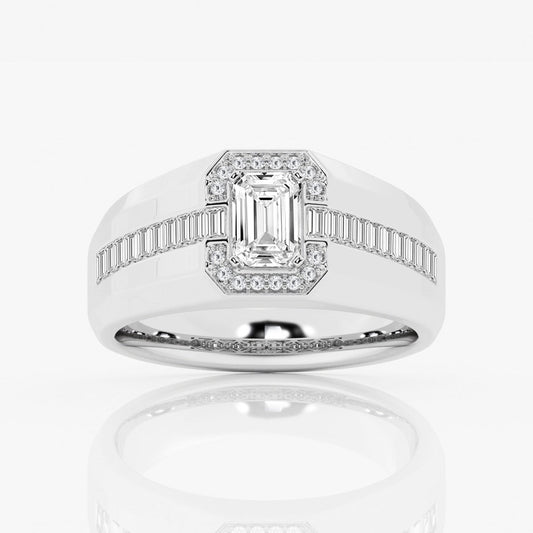 Emerald Moissanite with Graduated Baguette Side Stones Engagement Ring