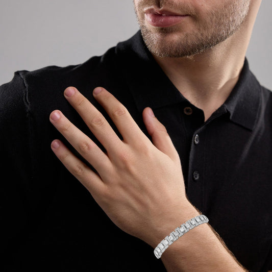 Round Moissanite Men's Multi-Row Rectangular Wedding Band