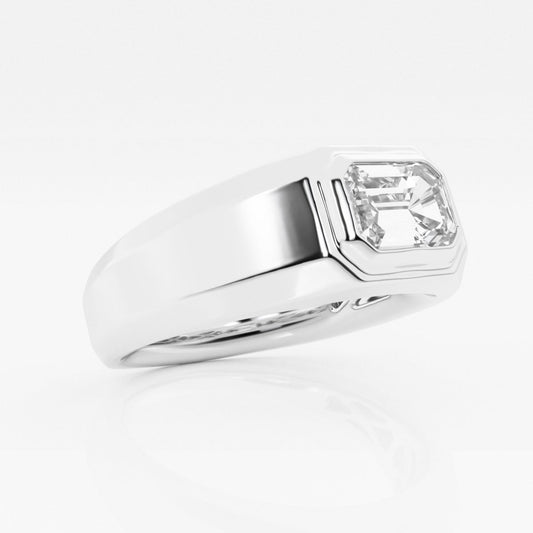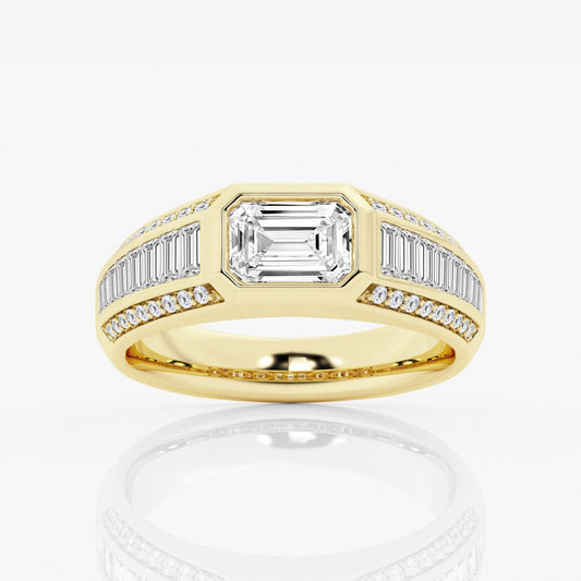 Emerald Moissanite Wide Band With Round and Baguette Side Stones Engagement Ring