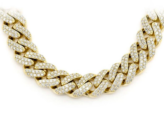 12 mm Moissanite Round Diamond Cuban Link Chain 14k Gold Plated