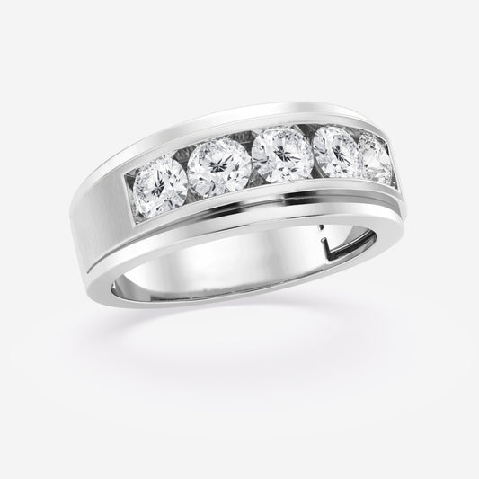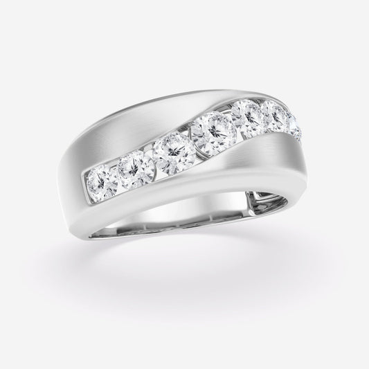 Round Moissanite 7mm Beveled Edge Sandblast Finish Eternity Band
