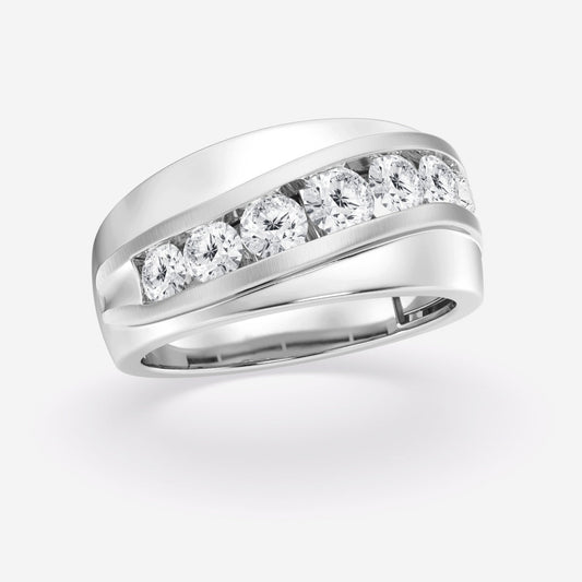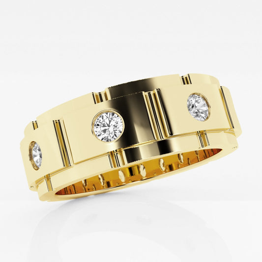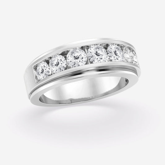 Round Moissanite 7mm Beveled Edge Satin Finish Eternity Band