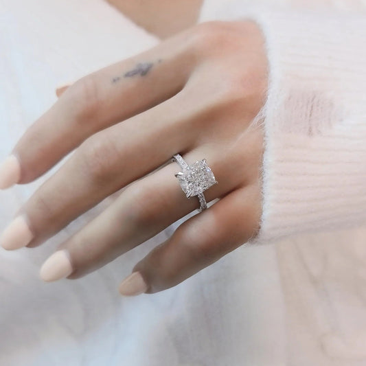 4.0 Carat Cushion Cut Diamond Ring With Pave Band