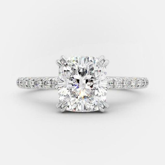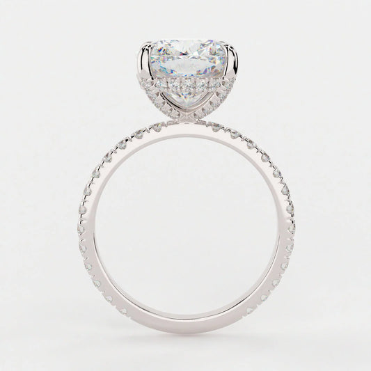 3 Carat Cushion Cut Hidden High Halo Diamond Engagement Ring with Micro Pavé Band