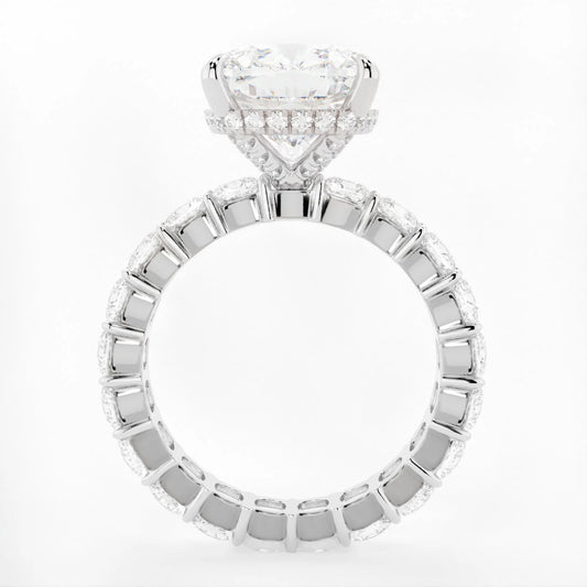 3.5 Carat Cushion Cut Hidden High Halo Diamond Engagement Ring 3mm Eternity Band