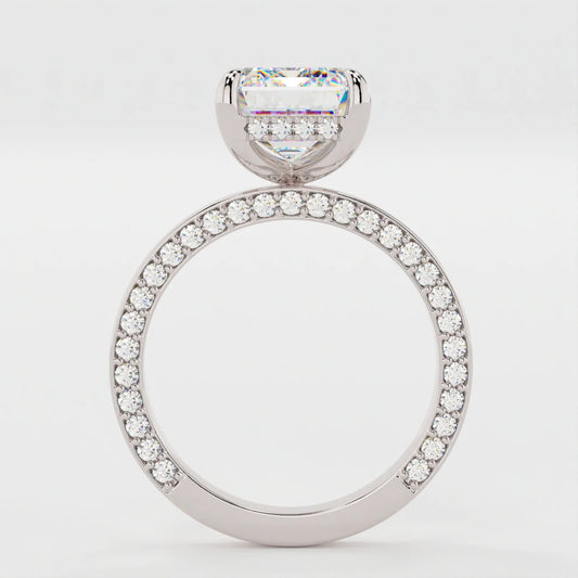 4 Carat Emerald Cut Diamond Engagement Ring with Triple Micro Pavé Band