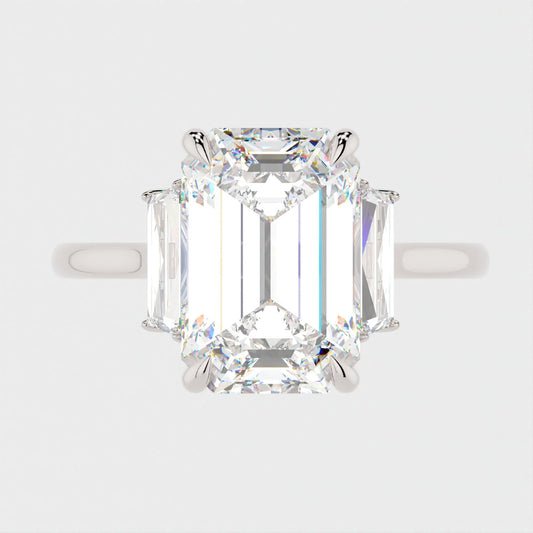 5 CT Emerald Cut with 2 Side Stones and a Solitaire Band