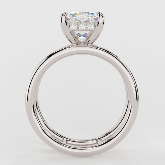 4.5 CT Emerald Cut Solitaire Band with Cathedral Setting and Shoulder Accents