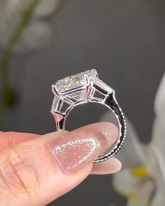 5 CT Emerald Cut with 2 Side Stones and a Solitaire Band