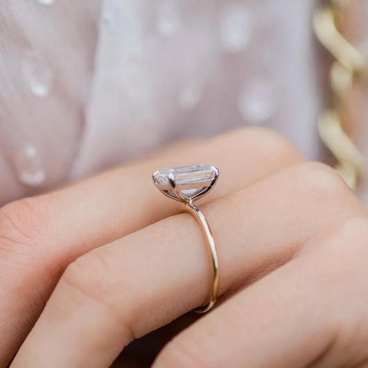 4.5 CT Emerald Cut Solitaire Band with Cathedral Setting and Shoulder Accents