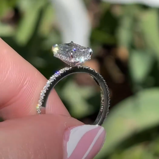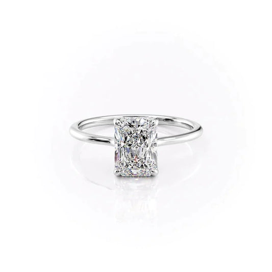 3 Carat Radiant Cut Diamond Engagement Ring with Hidden Halo Solitaire Band