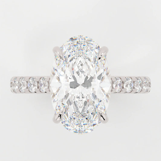3 Carat Oval Cut Diamond Engagement Ring with Pavé Band