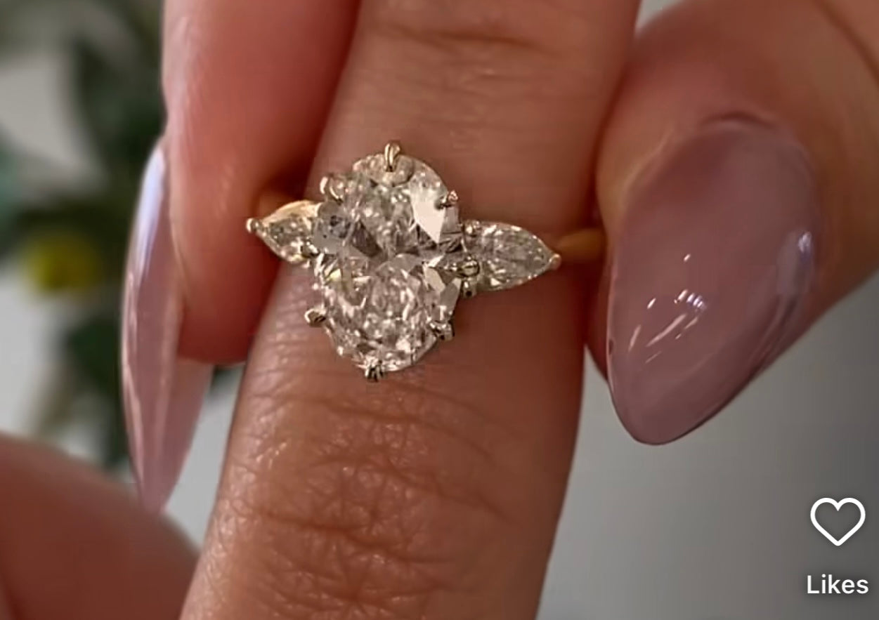 3-Stone Oval Ring with pear side stones and a shoulder accent